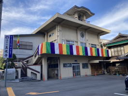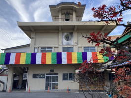 2023年12月9日(土)撮影 法要時の仏旗と幕が風に揺れています。 |