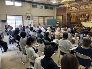 2025年9月21日(日)撮影 本堂外陣、お聴聞の様子です 皆さま、ようこそ お参り下さいました。 |