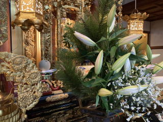 2025年8月2日(土)撮影 お盆法要(盂蘭盆会) 本堂お内陣のお荘厳です。 |