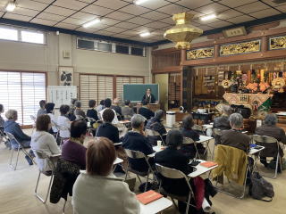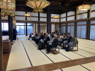 2025年11月5日(水) 本堂にてお参り後 永照寺ご住職さまより歴史や 見どころ、真光寺とのご縁等の お話しを頂きました。 |