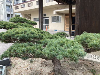 あれは真光寺が当番の巡番報恩講法要時、2014年の10月頃でした、この写真の様に茶色に染まったかの様になっている松を見て、総代のKさんとHさんが