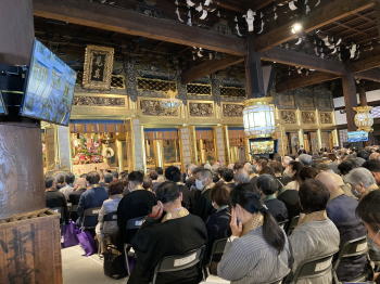 写真中央:御影堂での法要の様子