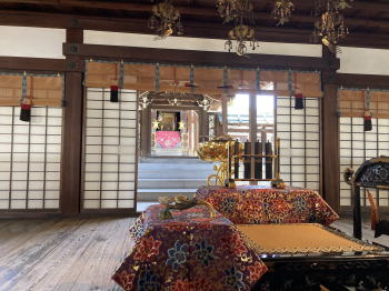 写真上:御影堂(国宝)のお内陣