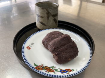 また春彼岸法要の時には牡丹餅(ぼたもち)を頂きました。春・秋お彼岸の時にはいつも持ってきて頂き、いつも美味しくご馳走になっています。