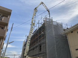 2021年3月27日撮影 なるほどですね!屋上にコンクリートが 流し込まれています。 (知人のマンションより) |