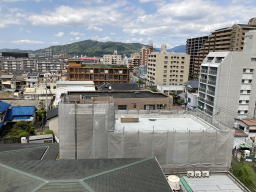 2021年4月18日撮影(知人マンションより) 屋上の写真です。右下が湯町通りです。 |