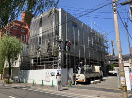 2021年5月29日撮影(湯町通りより) 足場が解体取り外されました。 それでは見ていきましょう! 更地からの角度、いつもの角度です。 |
