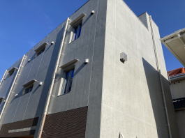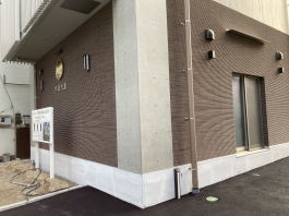 2021年5月29日撮影 コンクリートの打ちっぱなし 正確には打ちっぱなし風で、そう見える様に 貼り付けているとの事です。 |