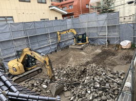 2022年1月27日(木)撮影 周りを囲っていました足場兼防音シート などが撤去されています。 きめ細かに分別されています。 |