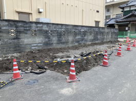 2022年2月8日(火)撮影 旧壁との堺めにブロックとセメントで 新たに土台らしき物がつくられています。 |