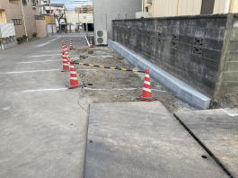 2022年2月11日(金)撮影 雨水が流れる様に写真奥側からと手前側からと 勾配がつけられて下水溝に集約される様になって います。 |