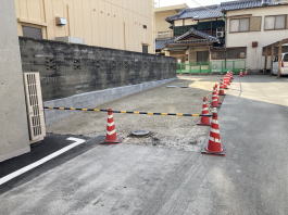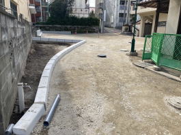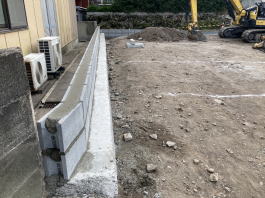 2022年2月8日(火)撮影 東側のお隣さんとの堺にも新しい土台が つくられています。 |