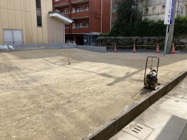 2022年2月11日(金)撮影 アスファルトの下地の砂が入れられ更に ならされて固められています。 |