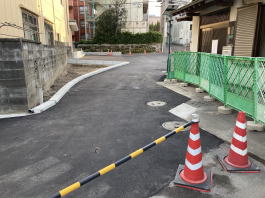 2022年2月18日(金)撮影 一方通行道路側から撮影、アスファルトで舗装 されました。 |