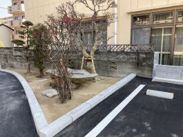 2022年2月23日(水)撮影 旧納骨堂跡地に駐車線 タイヤどめブロックが設置されました。 |