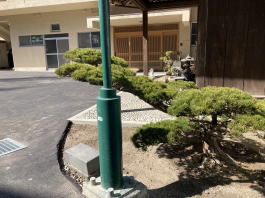 2022年3月2日撮影 本堂前に20p程の段差があります。 オレンジのポールを設置していますが 駐車の際はご注意下さいます様、宜しくお願い 致します。 |